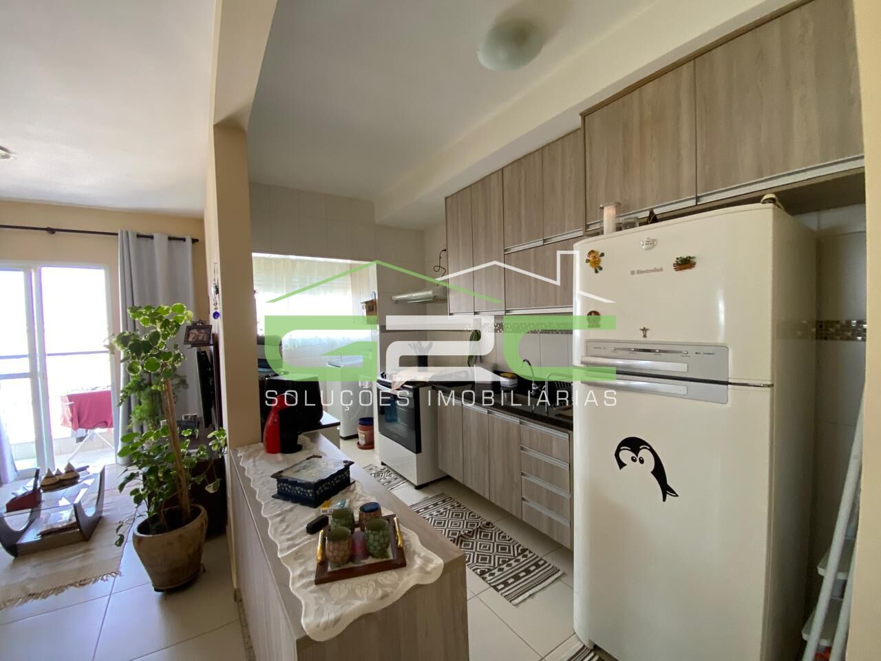 Apartamento novo no último andar, possui 2 dormitórios com armários, sendo 1 suíte, sala de estar e jantar integradas com sacada, banheiro social com armário, box em vidro e espelho. Cozinha americana e lavanderia com armários