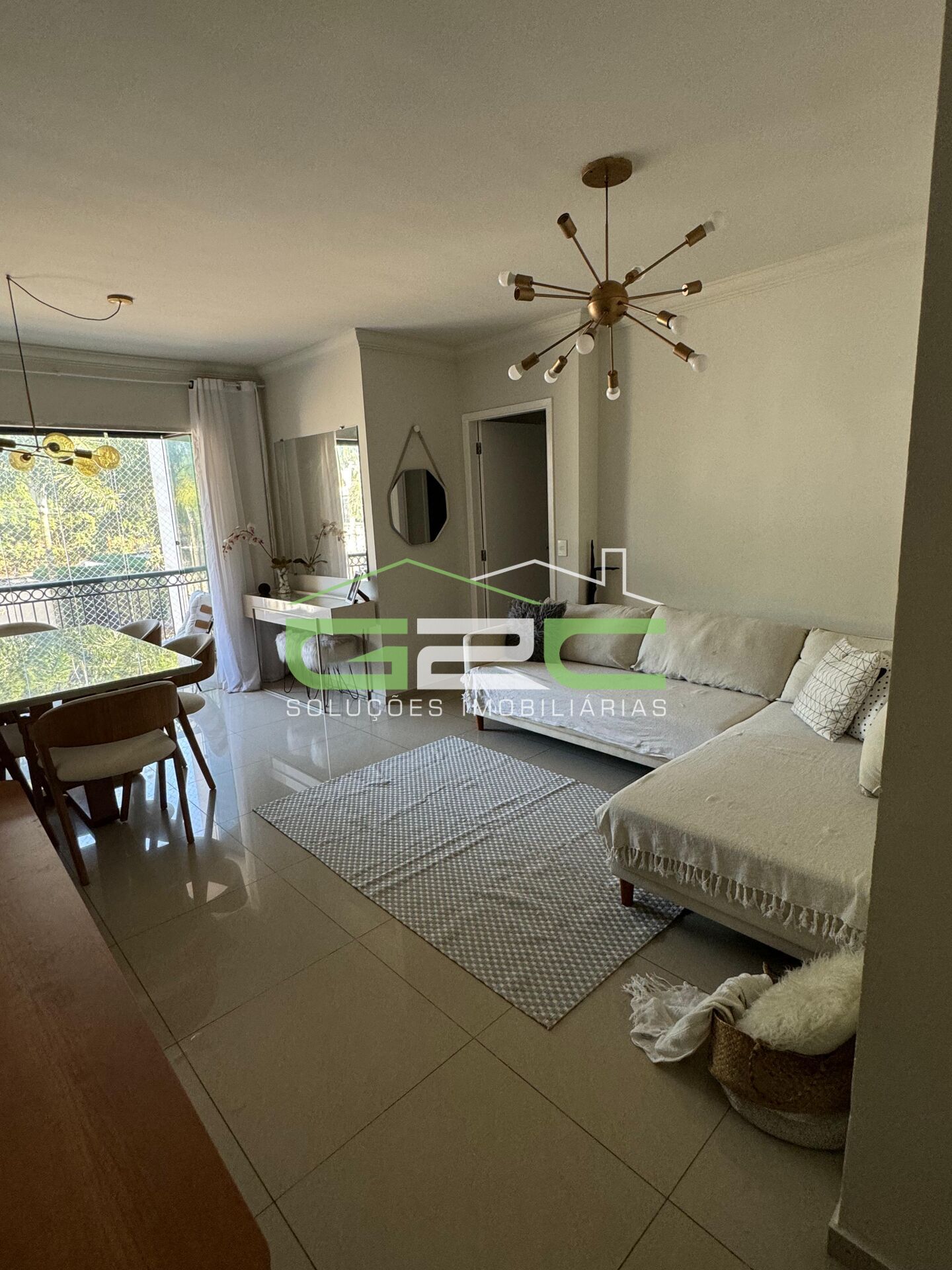 Possui 3 quartos, sendo 1 suíte, salas de estar e jantar integradas, cozinha e lavanderia com móveis planejados, cozinha possui cooktop e exaustor, banheiro social, varanda gourmet, fechada em vidro e com tela de segurança.