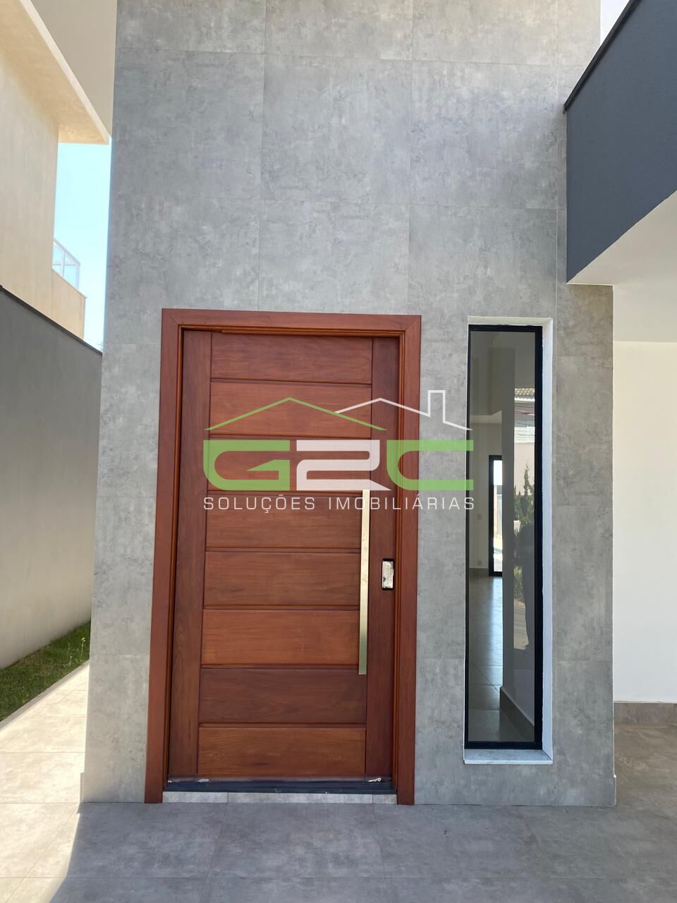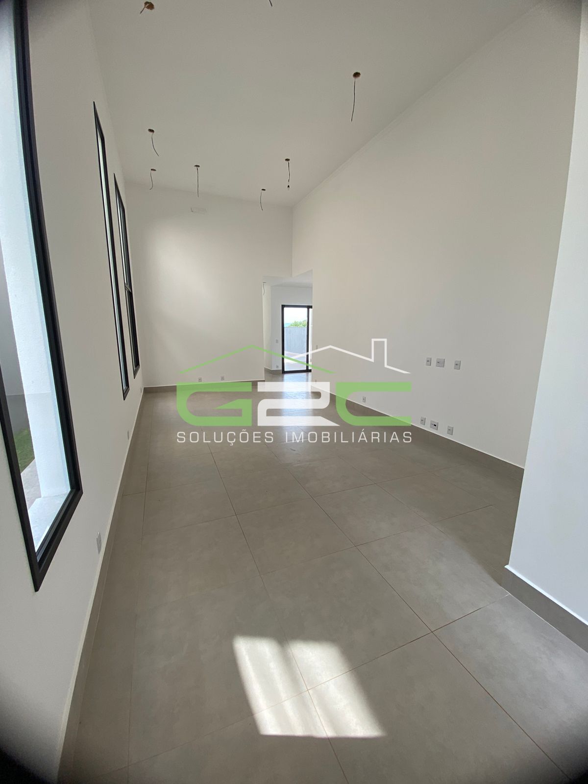 Casa térrea moderna e funcional com 3 suítes, escritório, lavado, sala com dois ambientes e pé direito duplo, cozinha com despensa e integrada ao espaço gourmet e piscina. Banheiro e depósito externo.