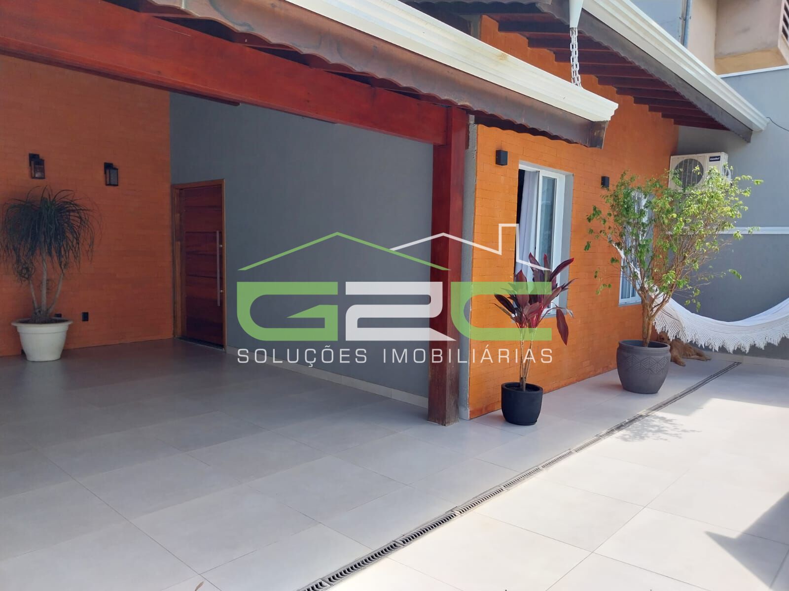A casa possui vaga para 2 carros cobertos e 2 descobertos.