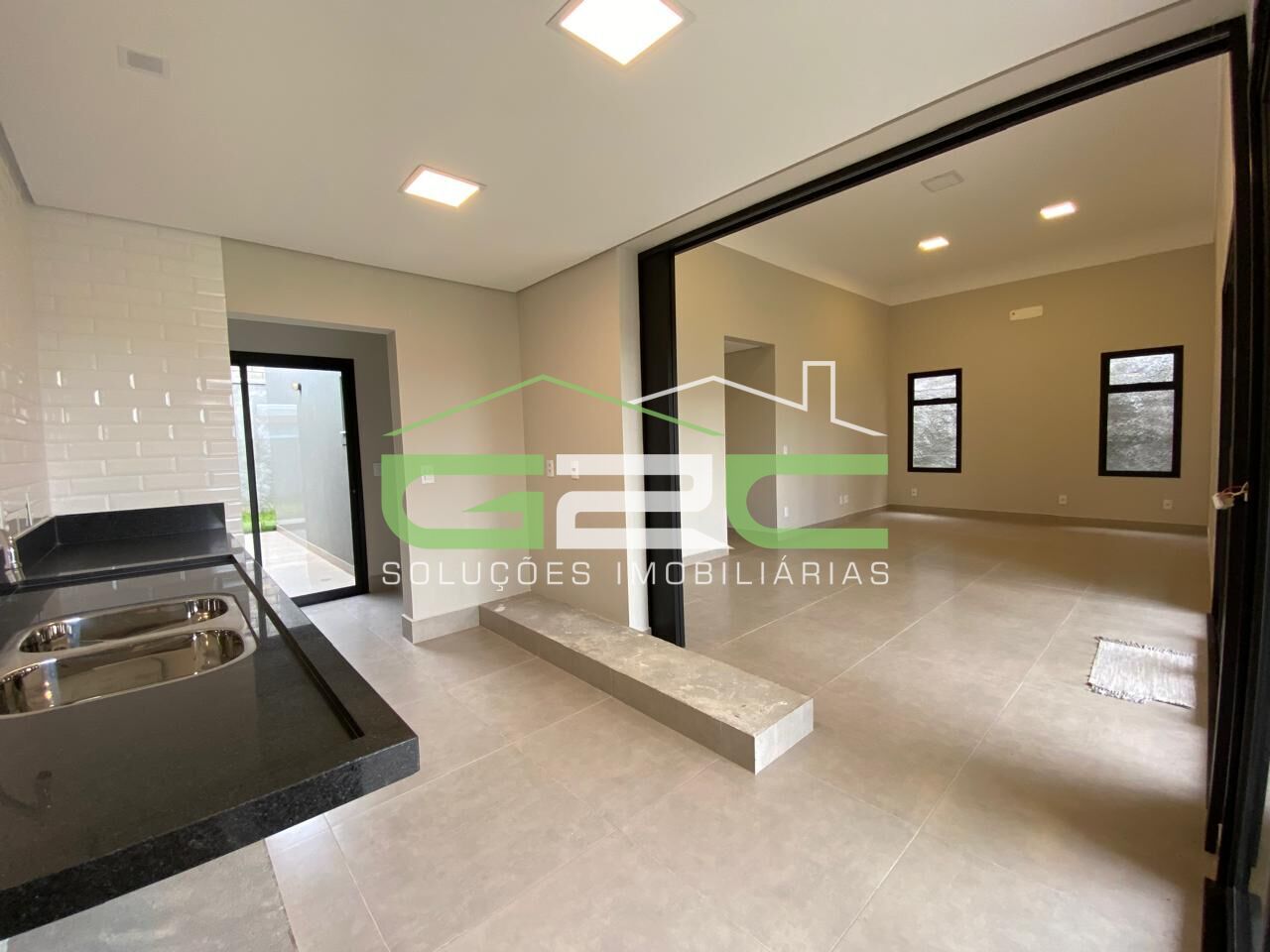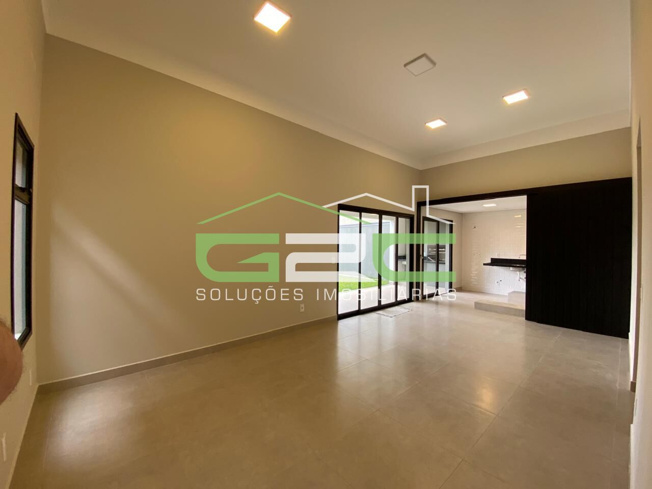A casa possui 3 quartos sendo uma suíte, banheiro social, lavabo, salas de estar e jantar integradas com pé direito duplo, cozinha, lavanderia e espaço de churrasqueira.