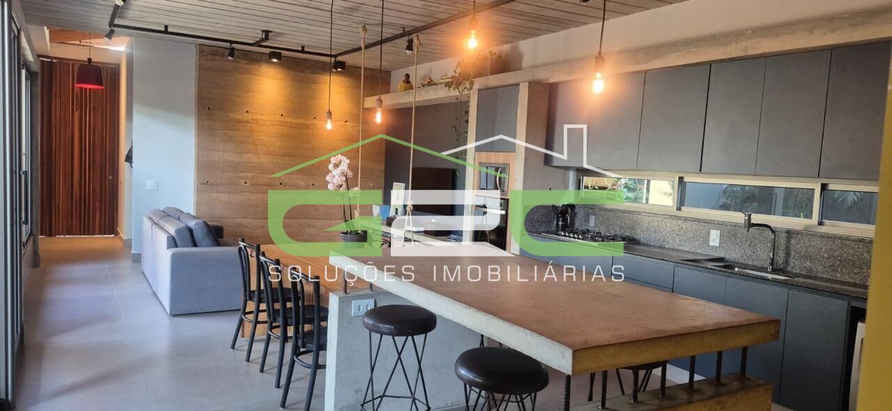 A casa possui 3 quartos, sendo 2 suítes, banheiro social, sala de TV, cozinha gourmet, lavanderia e escritório. Todos os ambientes possuem móveis planejados e diferenciados.