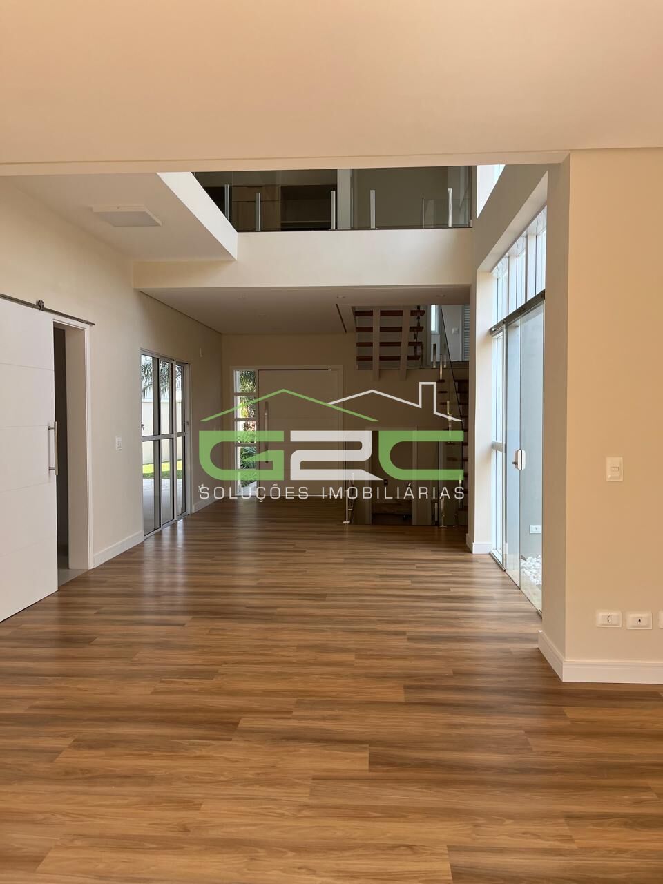 Piso Térreo possui um ambiente integrado com pé direito duplo, sendo sala de estar e jantar, lavabo, cozinha, despensa, lavanderia e gourmet.