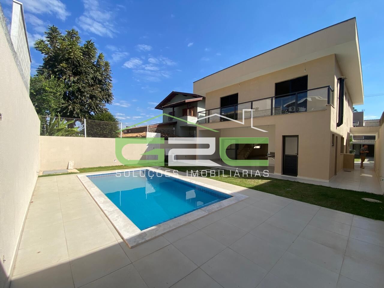 Piso térreo possui uma ampla sala integrada com sala de estar, sala de jantar, cozinha, lavabo, despensa e lavanderia. O espaço gourmet fica integrado a piscina e quintal, proporcionando um local aconchegante para receber familiares e amigos. Ainda no espaço externo possui um banheiro e depósito, dando maior privacidade a parte íntima da casa.