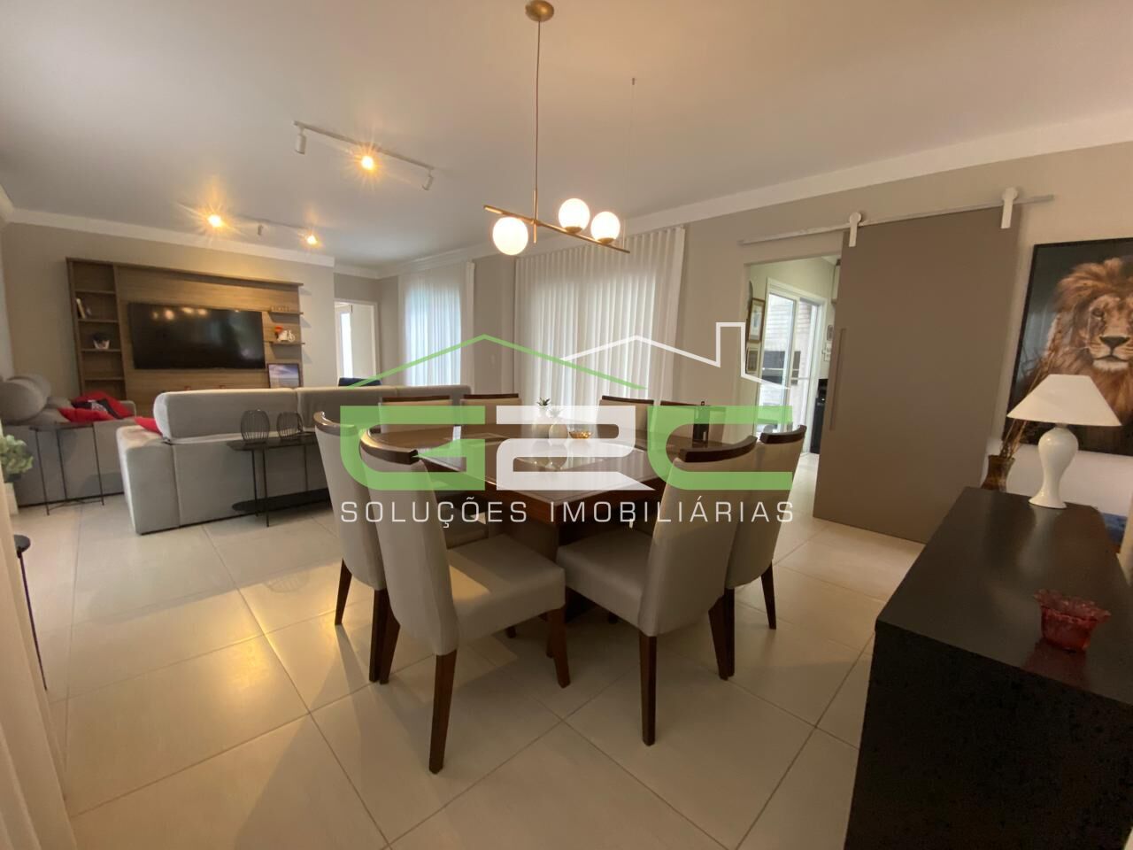 Possui as salas de estar e jantar integradas com ar condicionado, cortinas, móveis planejados, luminárias, lavabo completo, escritório com iluminação, móveis planejados com muito bom gosto e qualidade, cozinha planejada e integrada com o espaço gourmet.