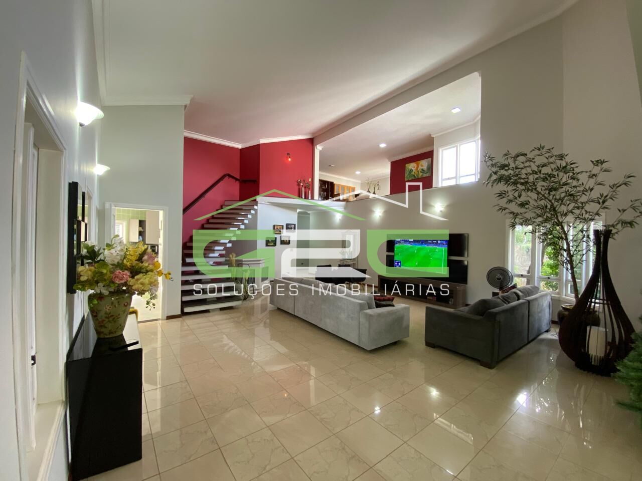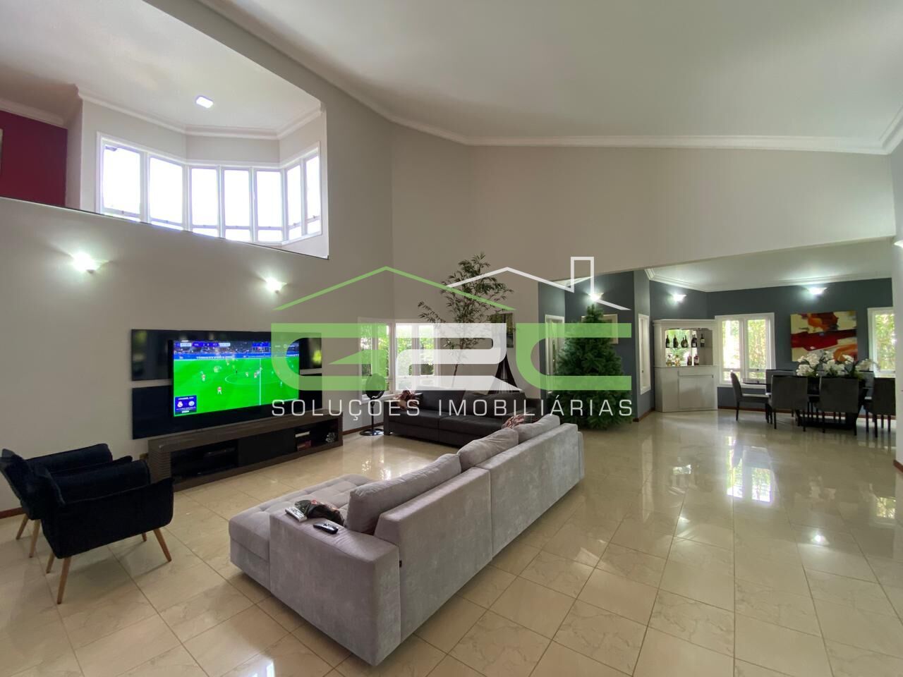 Ampla sala integrada com sala de estar, jantar e TV, lavabo, cozinha, despensa, lavanderia e escritório com armários planejados. Ainda possui um mezanino com 80 m².