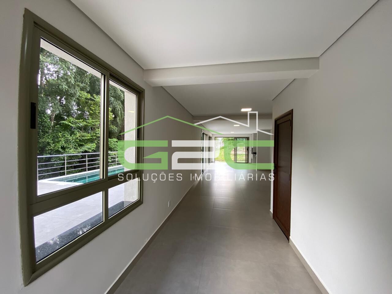 Piso Térreo possui as salas integradas, sala de estar, sala jantar, lavabo, cozinha e gourmet com acesso para uma belíssima piscina com vista privilegiada para a mata. Lavanderia, depósito e banheiro social externo.