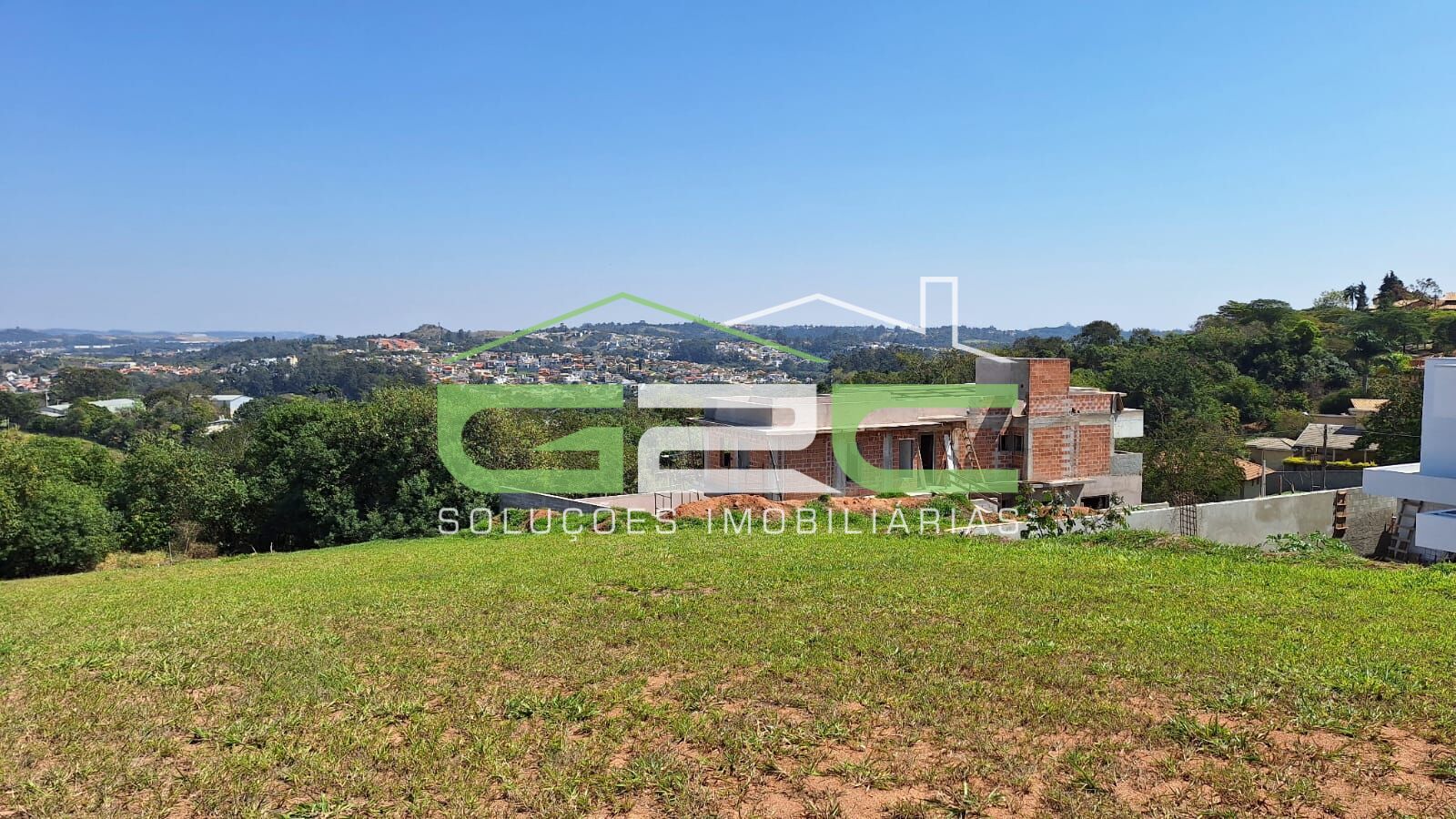 Terreno belíssimo e diferenciado de esquina na parte mais alta do condomínio, com 555,61 m², topografia plana com vista privilegiada e permanente para área verde e Serra do Japi.